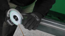 Lapplicazione sottovuoto di una corona diamantata larga 30 mm consente di tagliare e levigare con un’elevata produttività. Il diamante di alta qualità assicura una lucidatura senza scheggiature. La particolare geometria del corpo con coppa inclinata evita il contatto della flangia di serraggio con il materiale.